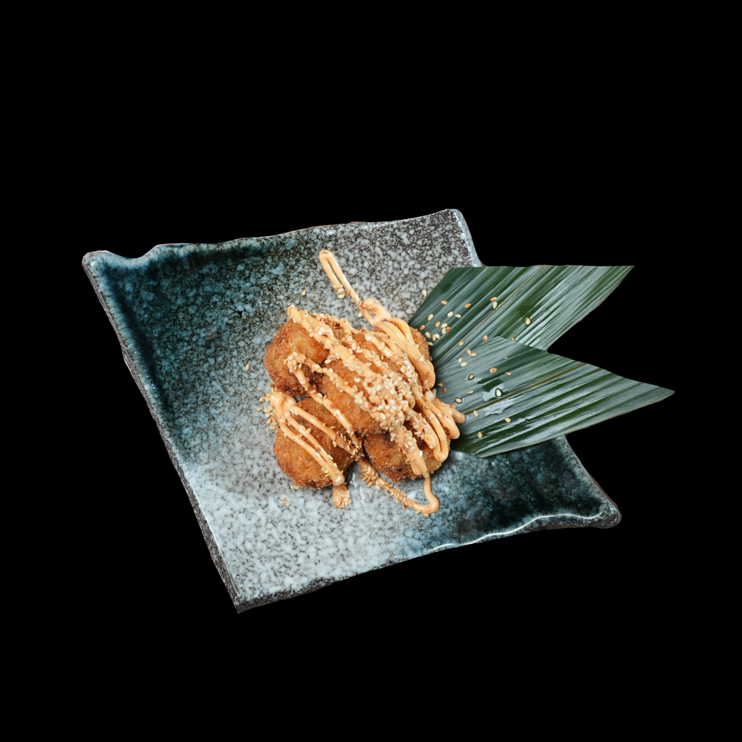Начинка на выбор: Начинка 1: лосось, сливочный сыр, соевый соус, зеленый лук, спайси соус, кунжут. Начинка 2: угорь сливочный сыр, зеленый лук, унаги соус, кунжут. Начинка 3: креветка, сливочный сыр, соевый соус, лук зеленый, спайси соус, кунжут.