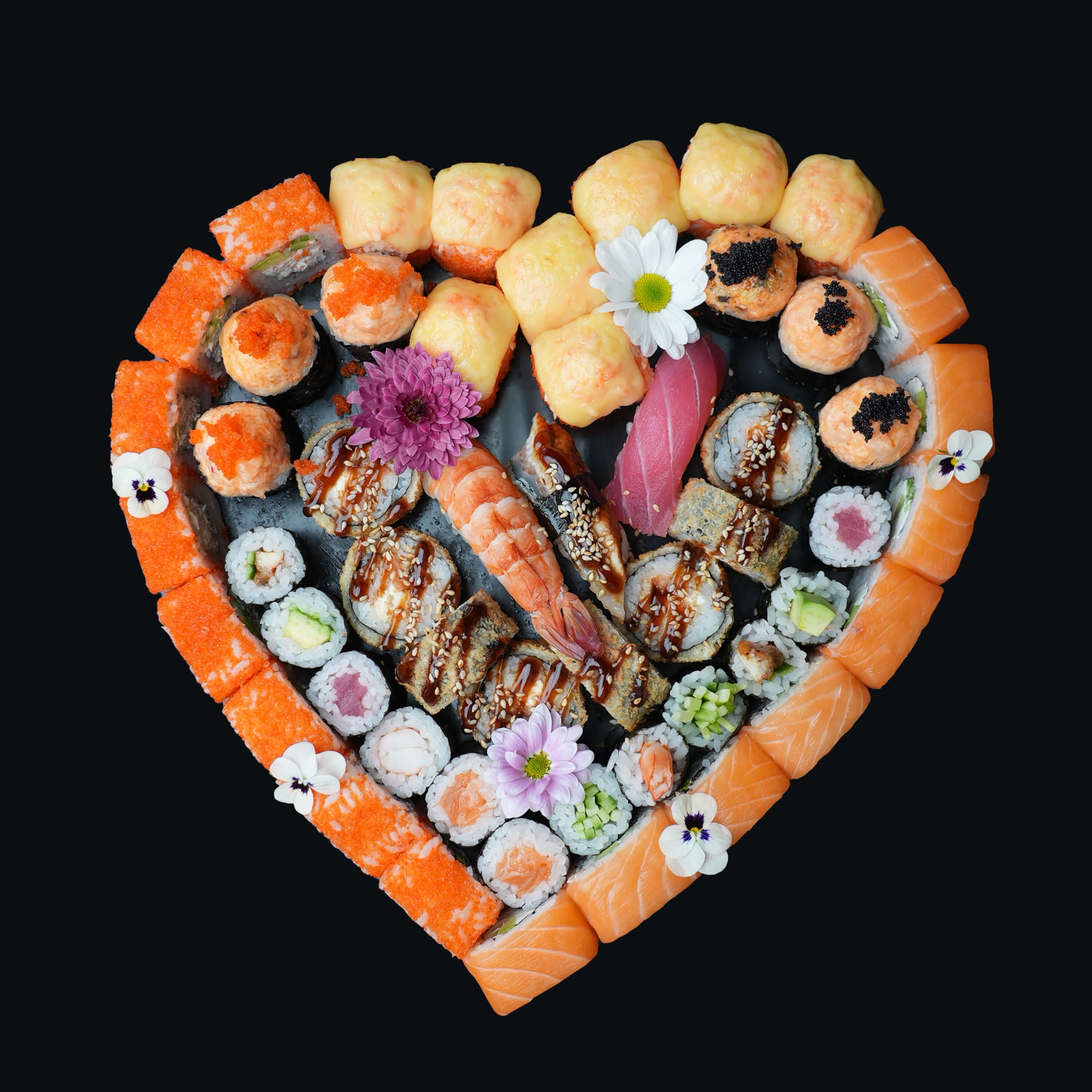 Роллы: мозайка 12 шт, калифорния 8 шт, филадельфия 8 шт, унаги чиз 8 шт.