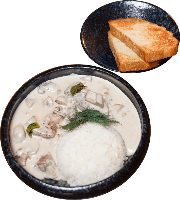 Шампиньоны, лук репчатый, чеснок, сливки, тимьян, розмарин